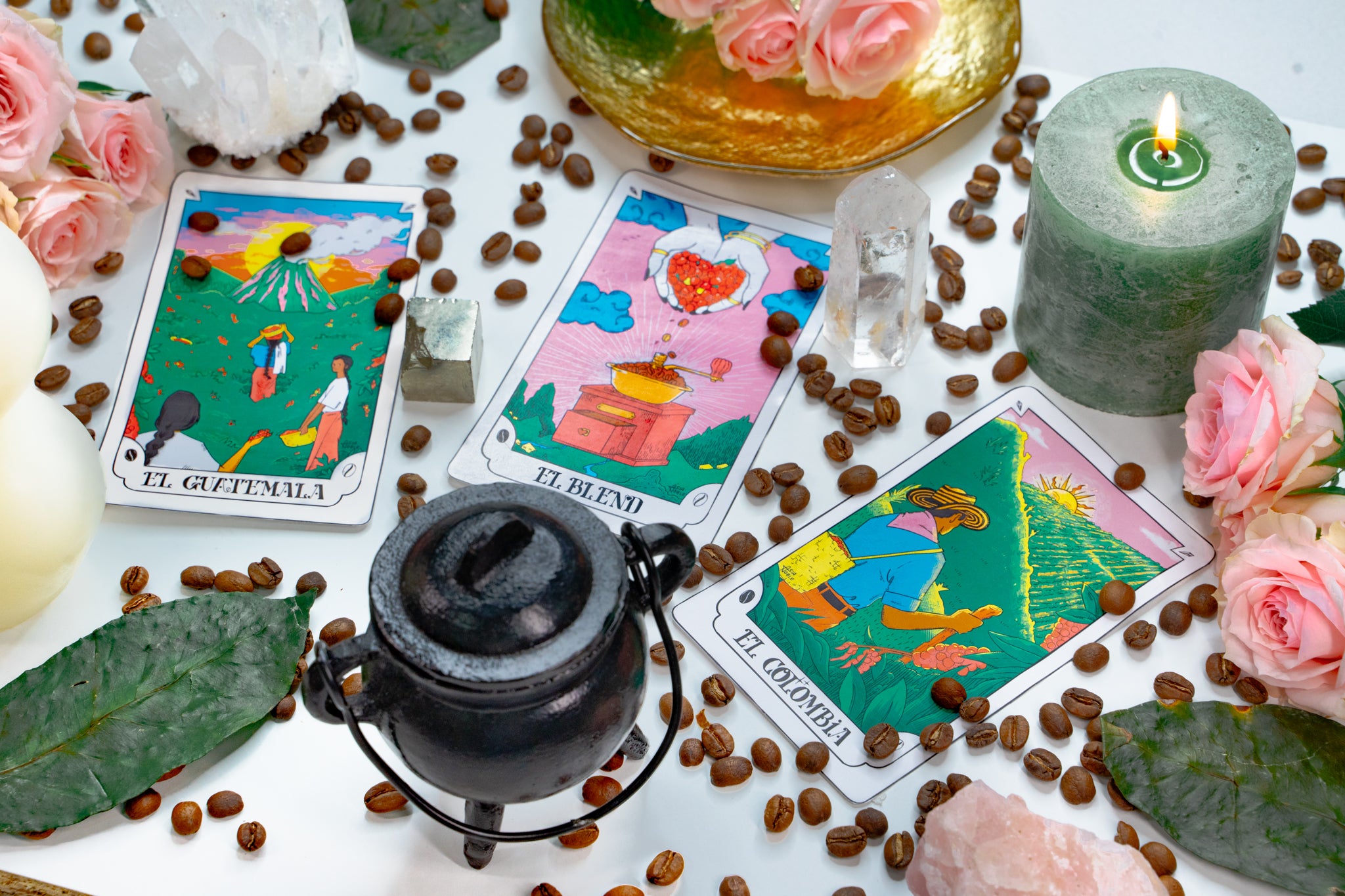 Cada uno de nuestros cafés está inspirado en una carta del tarot. No para predecir tu futuro, sino para recordarte quién eres y cómo estás vibrando. El tarot, como el café, invita a mirar hacia dentro.